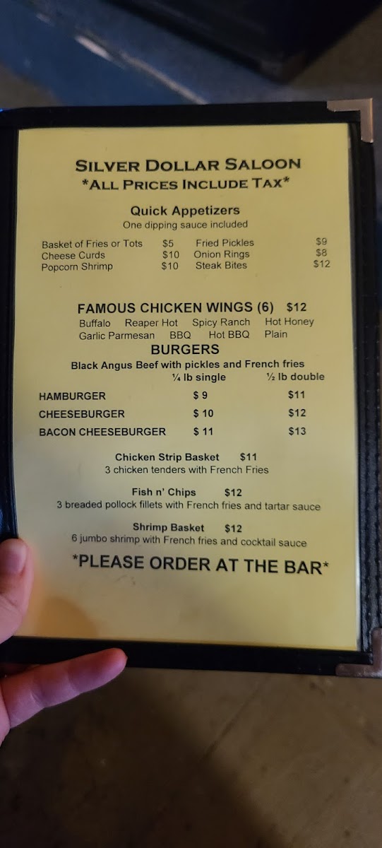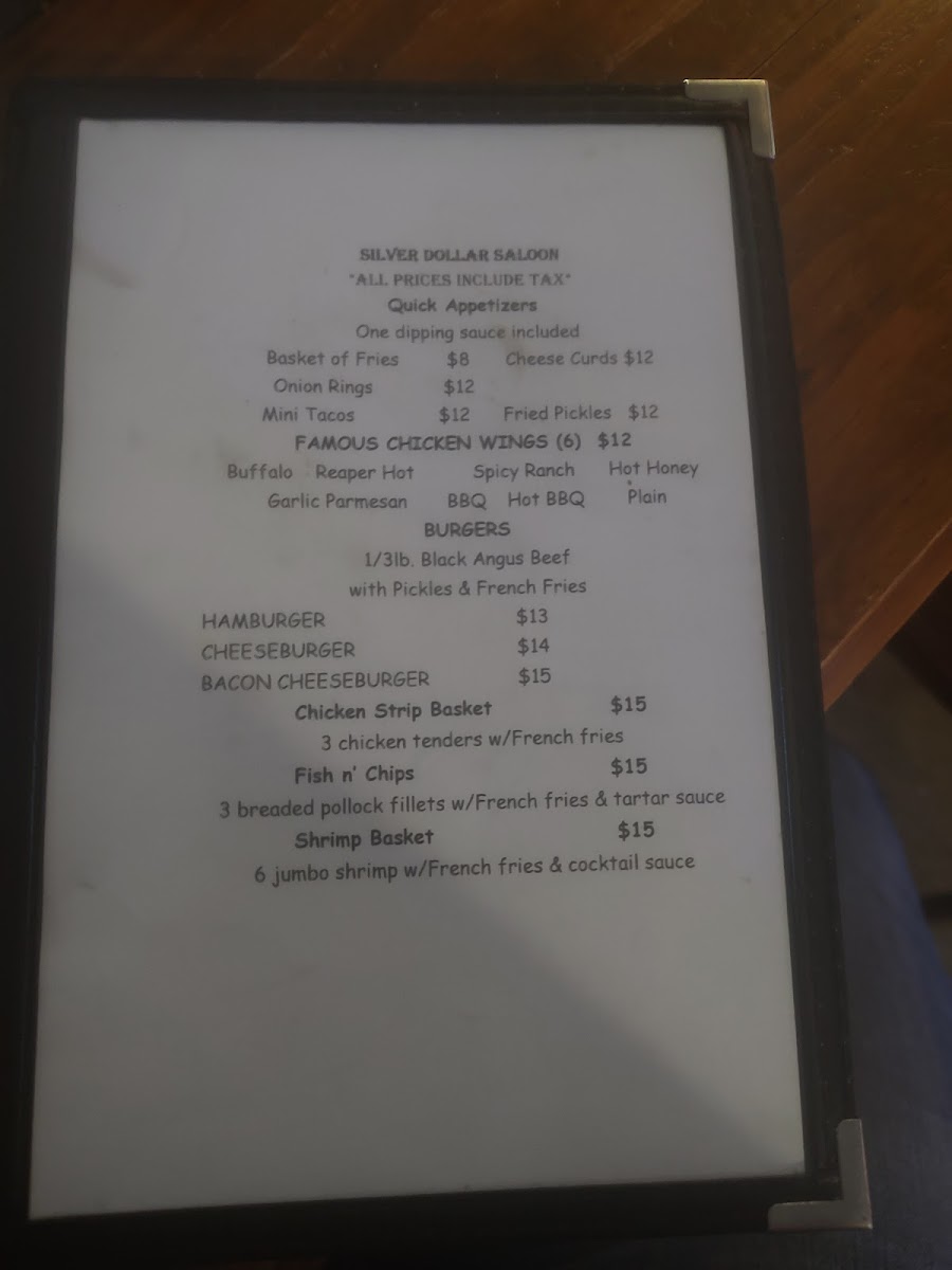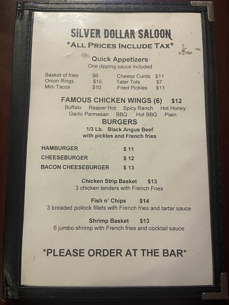 Silver Dollar Saloon Menu